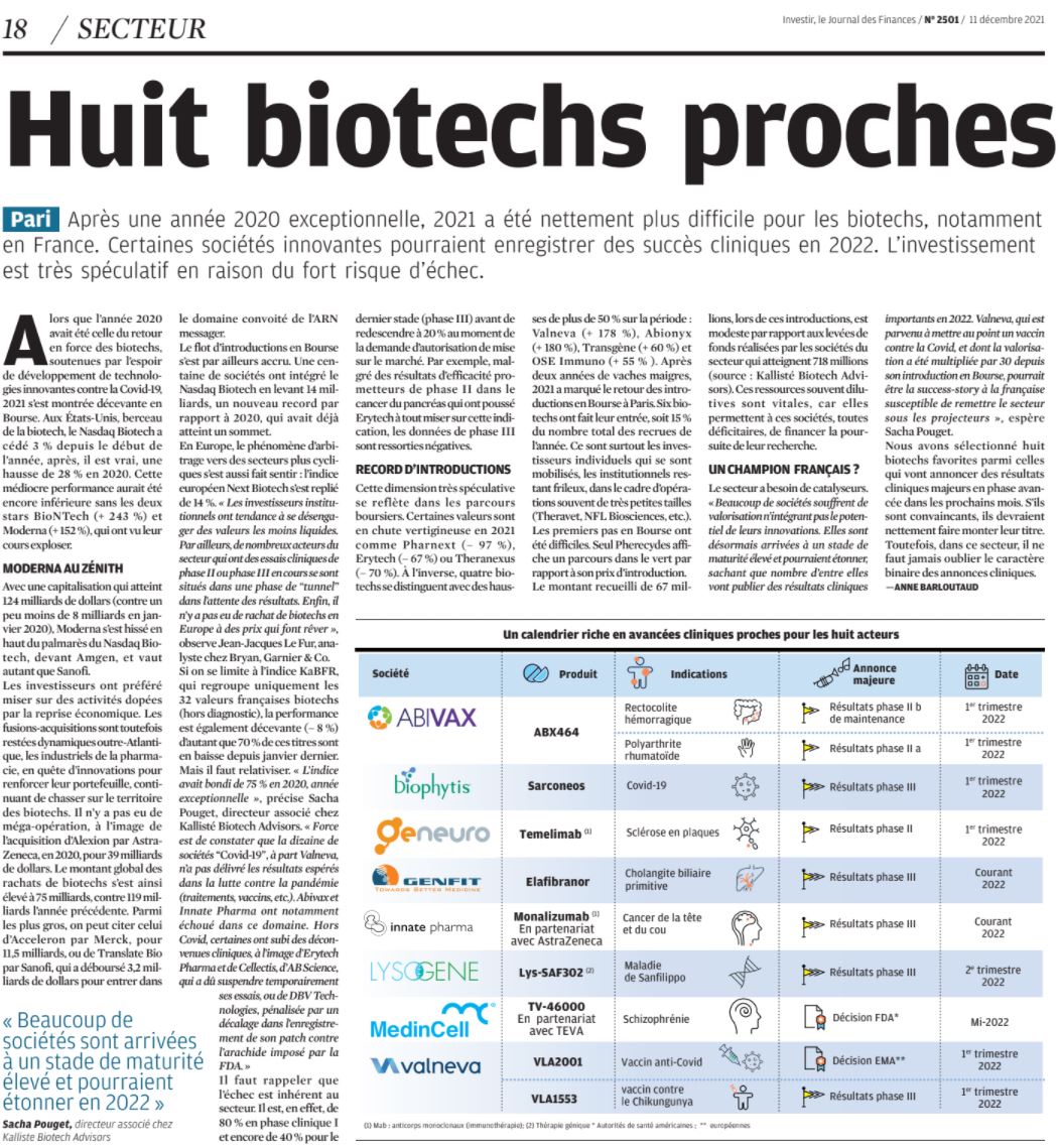 Boursorama — 02/02/2022 : Interview Sacha Pouget dans "Le Journal des Biotechs" (retour sur les performances, financements, IPOs, M&A, et Newsflow 2022)